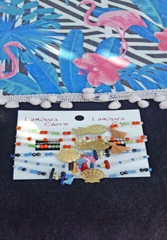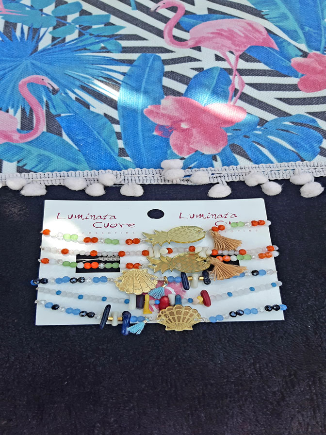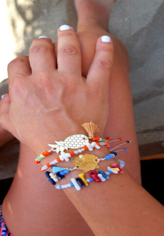 Set of four bracelets with macrame pineapple glass and plexiglass shell and coral natural